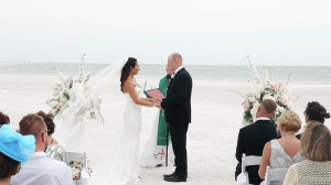 The reception aboard the Yacht Starship was a feast for the senses, with a carefully curated menu offering New York strip with mashed potatoes and vegetables, salmon with the same accompaniments, and a delicious pasta dish. The couple also infused their love for their pets into the bar menu, naming their signature cocktails after their dogs—Rex’s Jack & Coke, Rosie’s Malibu Sunrise, and Sadie’s Shirley Temple. Guests enjoyed a sweet treat with a classic buttercream wedding cake from Publix, while Cakes & Creations by Ashley crafted personalized cookies for each guest, doubling as both favors and elegant place settings.