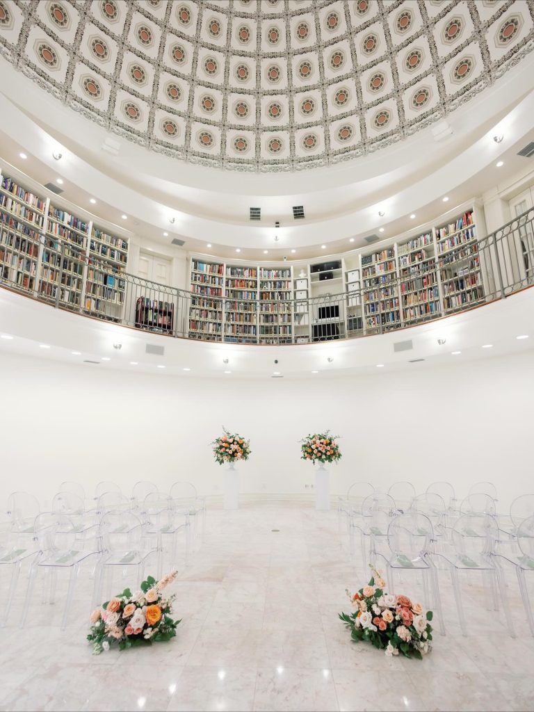 Their ceremony was a vision: soft, storybook-inspired florals and thoughtful planning by Bustle & Blooms Weddings, set against a dreamy library backdrop that made every moment feel like part of a fairytale chapter. The ivory patterned linens from Over The Top Rental Linens added much charm, elevating each table with elegance. Soma & Austin’s day was romantic, timeless, and full of enchantment a celebration straight from the pages of a love story. Cheers to the Sullins’!