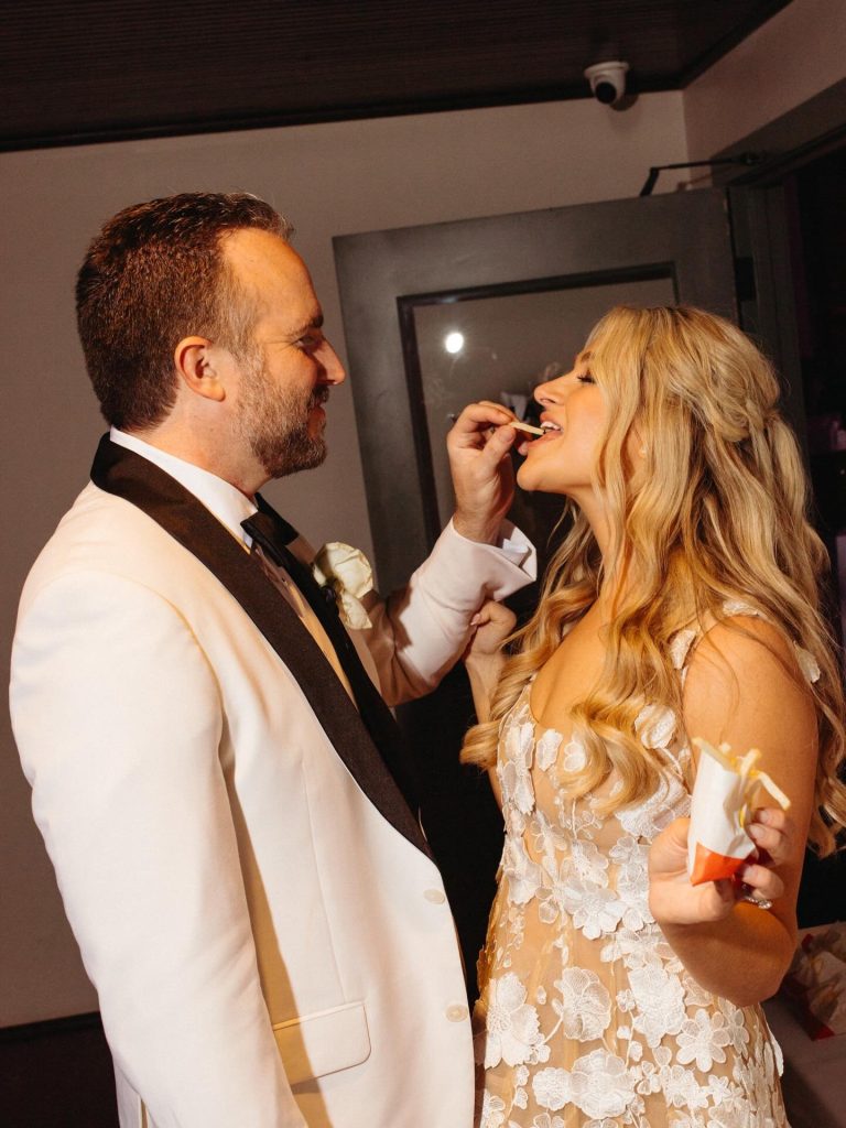 And just when guests thought the night couldn’t get any better, the celebration ended in the most iconic way: a late-night McDonald’s run. Because honestly, nothing hits quite like cheeseburgers and fries on the dance floor. It was the perfect, joy-filled ending to a day that proved weddings don’t have to choose between elegant and unforgettable—you can absolutely have both. Cheers to the newlyweds!