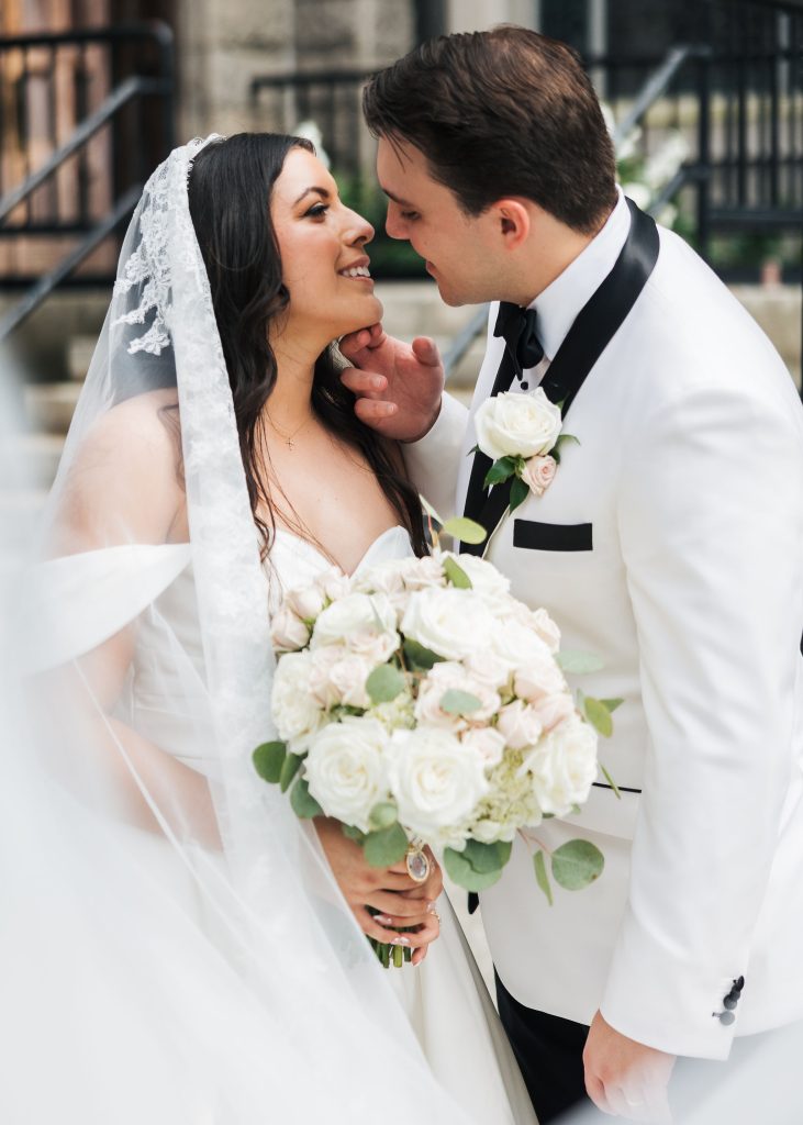 Theresa & Daniel’s wedding was a beautiful blend of classic elegance and heartfelt intention. With nods to their Spanish and Portuguese heritage woven throughout the celebration, every detail felt meaningful and romantic. Soft ivory florals set a timeless tone, creating a refined yet warm atmosphere for their “I do’s.” Theresa’s radiant bridal look by Femme Akoi Beauty Studio perfectly complemented the day’s romantic aesthetic, enhancing her natural glow with effortlessly polished hair and makeup.