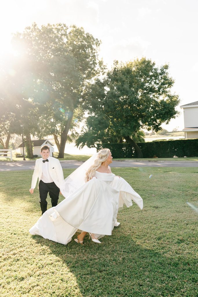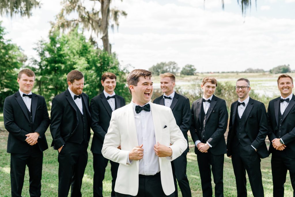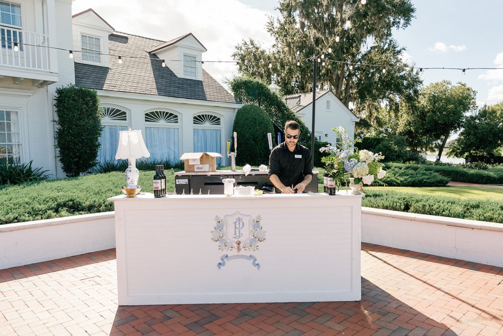 Beneath sprawling oak trees draped in Spanish moss, their day unfolded with refined Southern charm and thoughtful personalization layered into every detail. Set against the estate’s stately white columns and manicured brick pathways, their portraits felt timeless — a natural reflection of the classic aesthetic carried throughout the celebration.