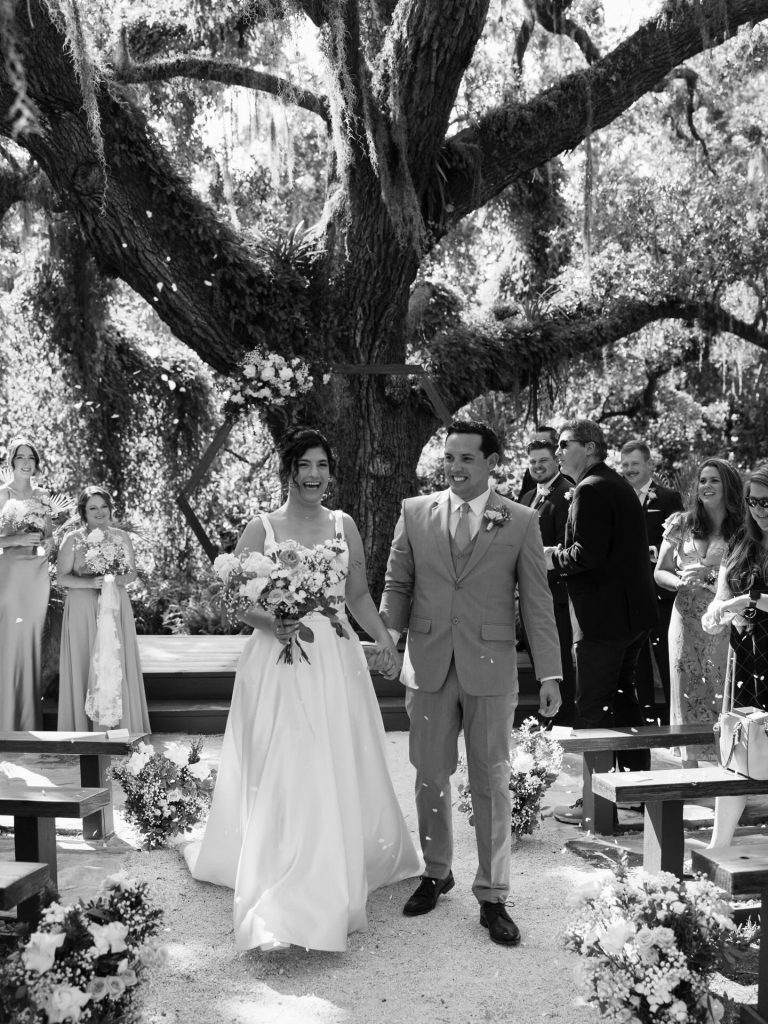 The ceremony backdrop alone was breathtaking, framed by sweeping natural scenery that created a truly magical setting. Adding to the romance was the stunning floral design by Mint Floral Studio, whose arrangements brought softness, texture, and elegance to every corner of the day. As the celebration moved into the evening, Tampa Bay DJ Company kept the energy high and the dance floor packed, ensuring the party never stopped.